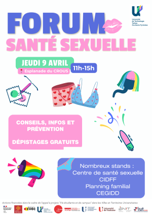 De 11h00 à 15h00 retrouvez sur l'esplanade du CROUS de nombreux organismes comme le centre de santé sexuelle, le CIDFF, le Planning familial, le CEGIDD, … Animations, échanges, dépistages et distribution de culottes menstruelles prévus.