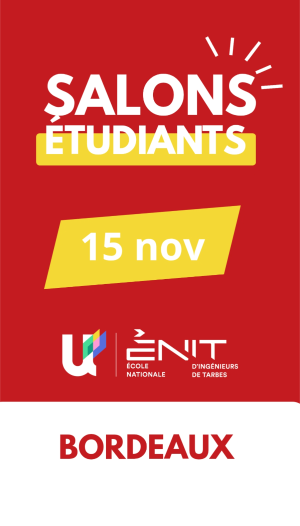 Retrouvez les enseignants et étudiants de l'ENIT au salon de l’Étudiant samedi 15 novembre au Palais des Congrès de Bordeaux.