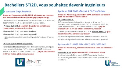 - Étudiants ayant passé le concours Geipi Polytech en 2025, n'ayant pas obtenu un rang de classement suffisant pour intégrer l'ENIT en septembre 2025 mais ayant obtenu une mention au Bac : étude du dossier scolaire
